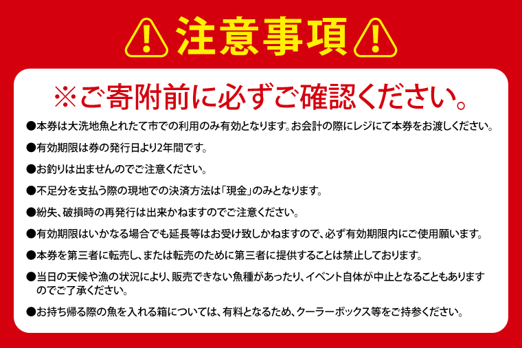 ・本券は大洗地魚とれたて市での利用のみ有効となります。お会計の際にレジにて本券をお渡しください。