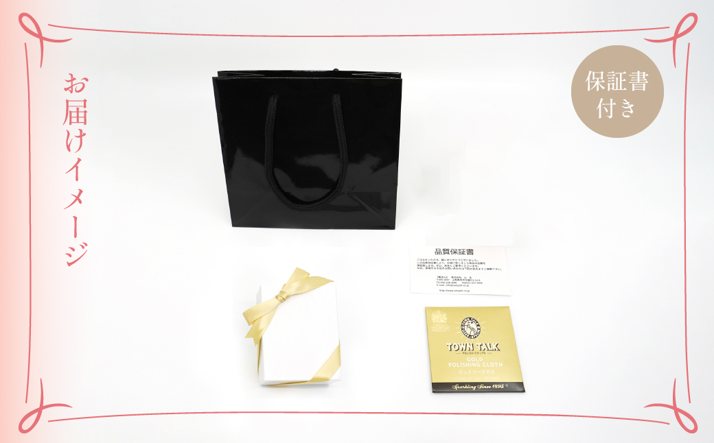 高温・多湿の場所での着用は避けてください。着用後はジュエリー専用クロスなどで軽く拭きとってからジュエリーボックスなどに保管してください