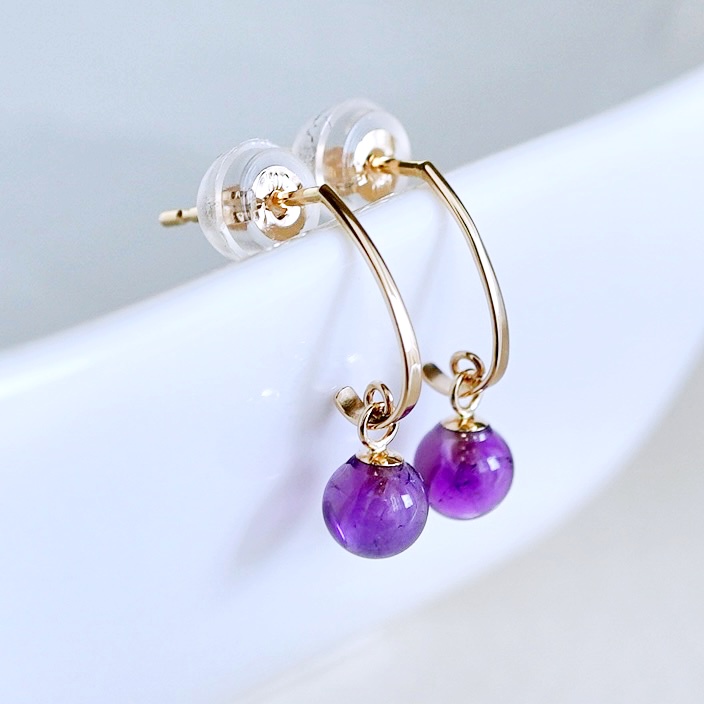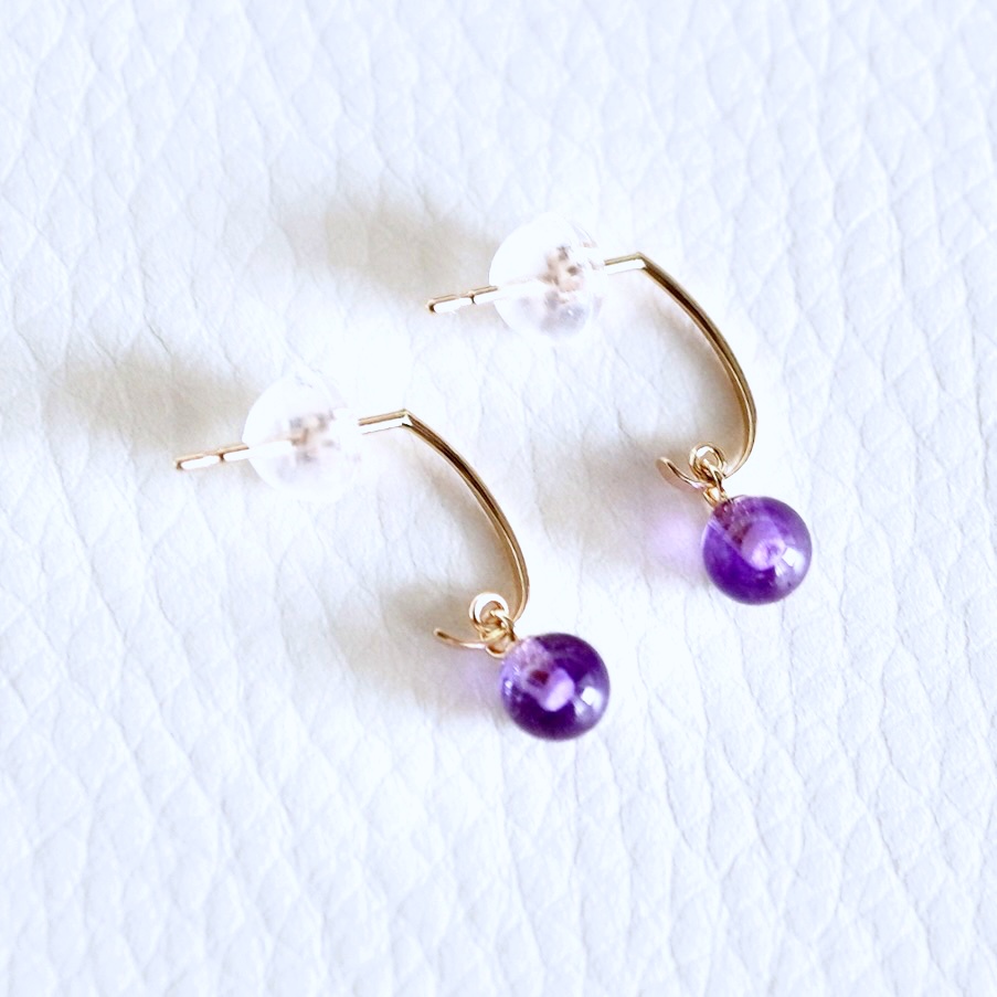 アメシストが揺れて煌めくピアスです。