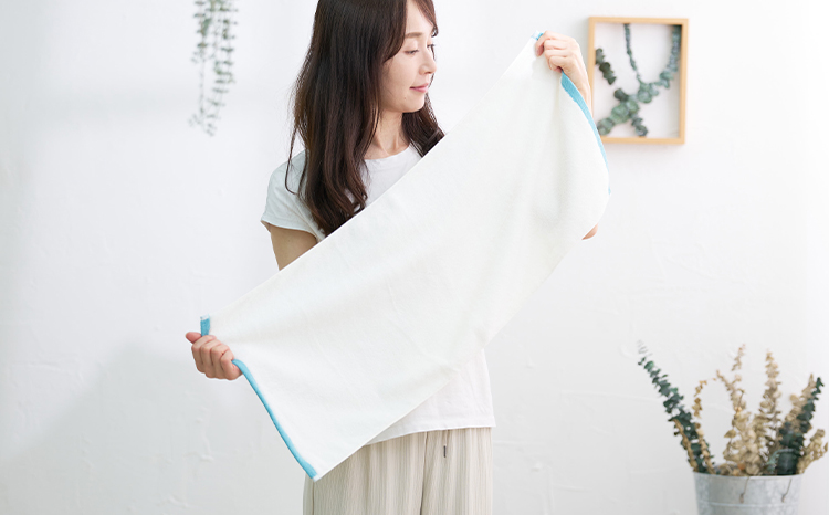 糸についた糊(のり)や油分などの不純物をきれいにすべて取り除き、漂白・水洗いをしていますので、おろしたてのタオルがそのまま使えます。