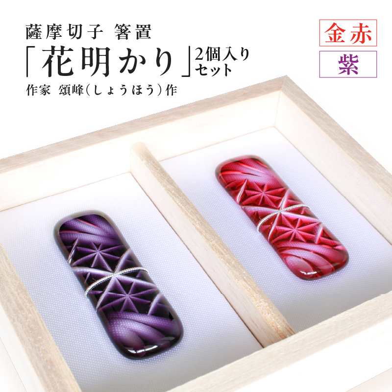 薩摩切子 箸置 「花明かり」 金赤 1個、紫 1個