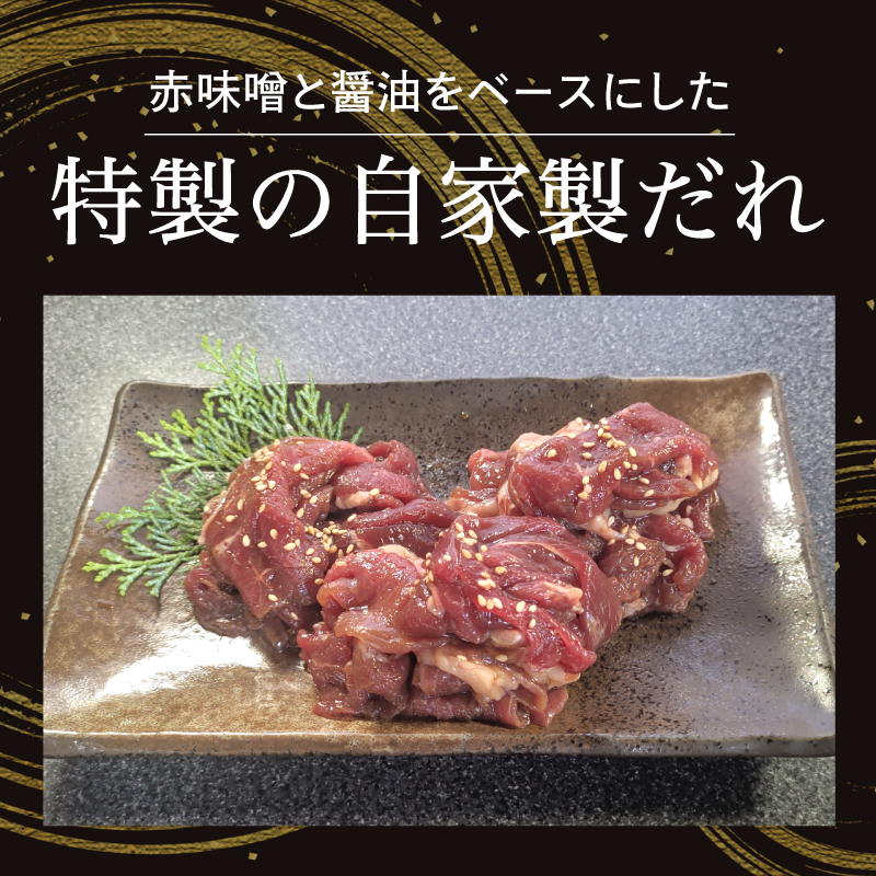 自家製の赤味噌ガーリック味のタレで漬け込むことで更に旨味に拍車がかかり、白ご飯やお酒によく合います。