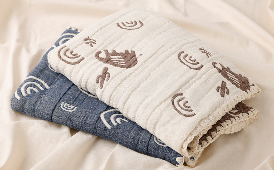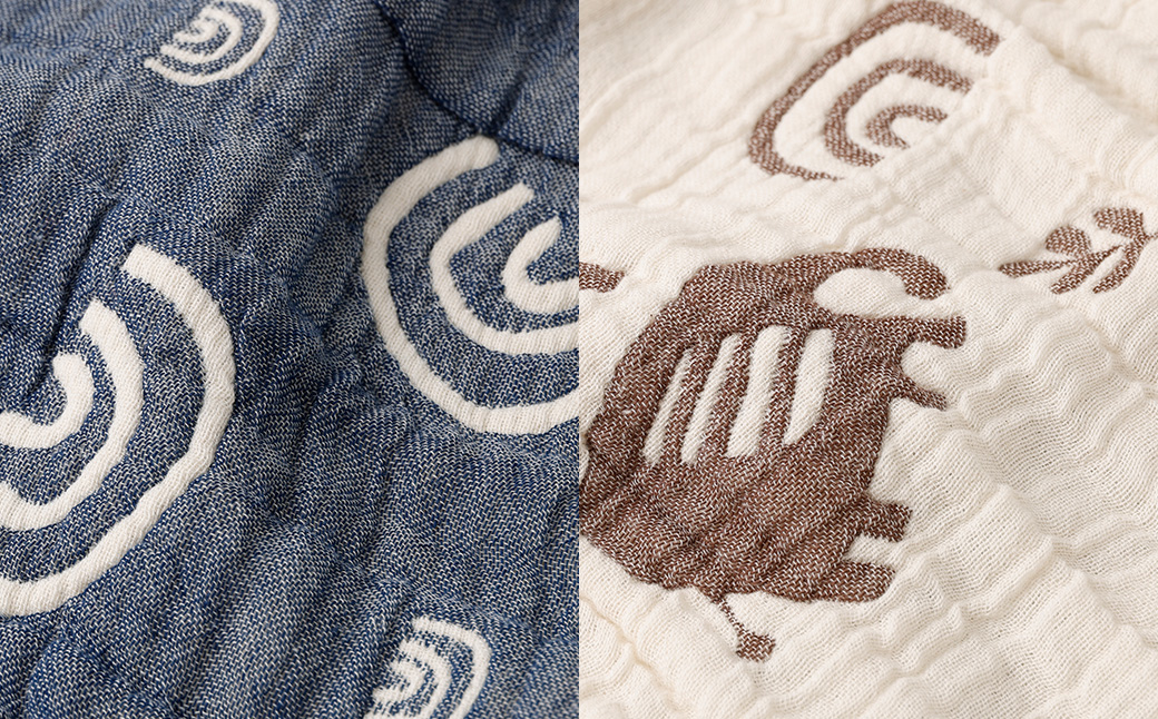 6層のガーゼは空気を含み、ふんわりと空気や汗を取り込み、適度な温度に調節してくれます。