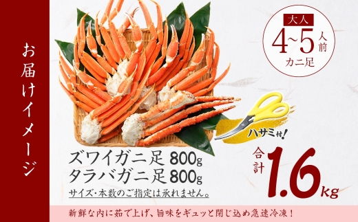 ボイルタラバガニ800g前後<br />ボイルズワイガニ足800g前後<br />※本数の指定不可<br />【タラバガニ】原産国:ロシア産/加工地:北海道弟子屈町<br />【ズワイガニ】原産国:ロシア産/加工地:北海道弟子屈町