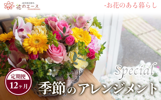 12ヶ月定期便でのお届けです。毎月1回フラワーアレンジメントをお送りします。