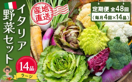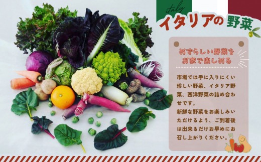 年間定期便48回。市場では手に入らない珍しい野菜、イタリア野菜、西洋野菜の詰め合わせ。季節の西洋野菜14品を毎月4回お届けいたします。