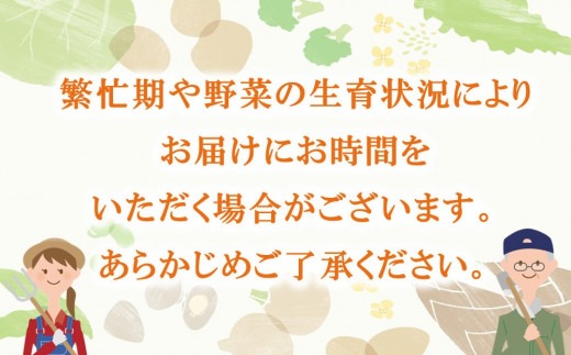※繁忙期や野菜の生育状況によりお届けにお時間をいただく場合がございます。あらかじめご了承ください。