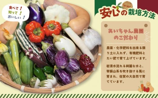 あいちゃん農園ではお米と年間200品種以上の野菜を栽培しており、野菜セットは周年ご提供しています。
