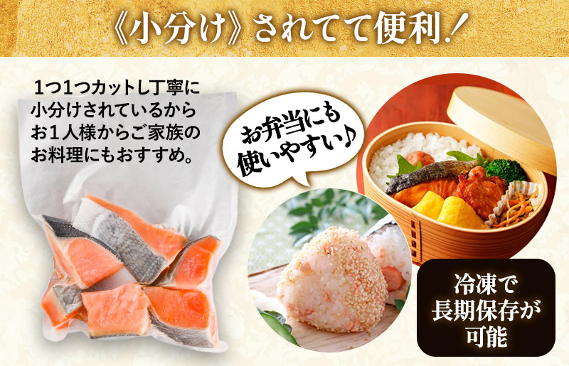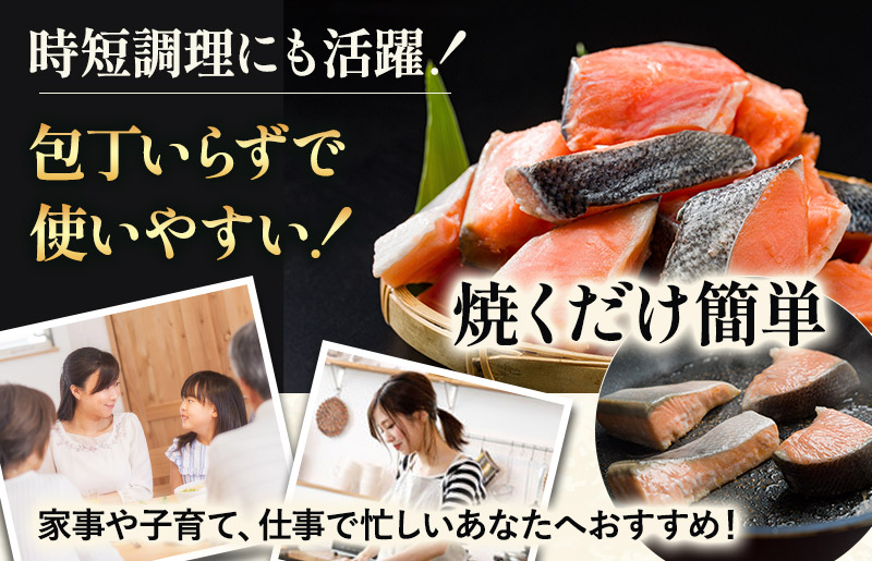 銀鮭の切り身加工の規格外切り身(カマ、尾、打ち身、不揃い、色飛び)を訳あり製品として増量してお届けします。