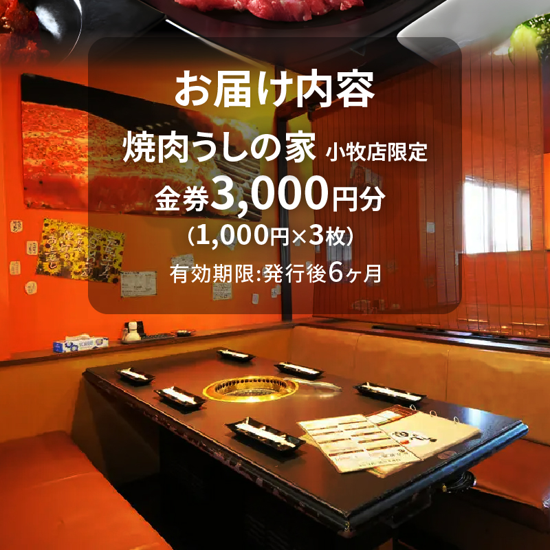焼肉うしの家 小牧店限定 金券3,000円分(1,000円×3枚)
