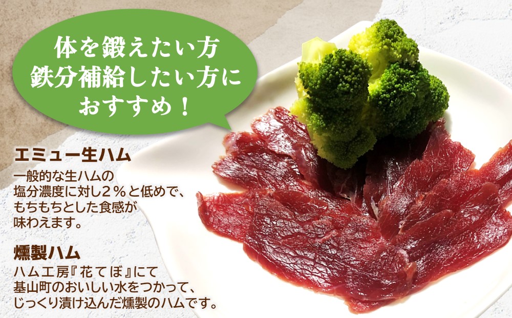製品の付加価値として基山町内のエミューを100%原材料としているため