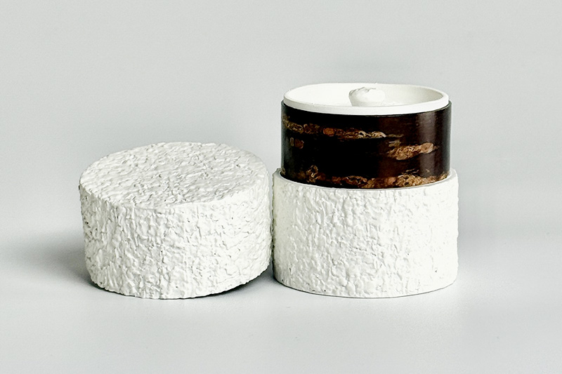山桜樹皮の持つ有機的な凹凸の魅力を引き出すよう、白または黒のマット塗装を施しました。