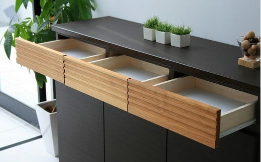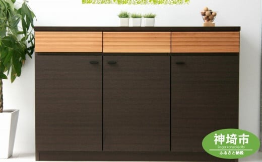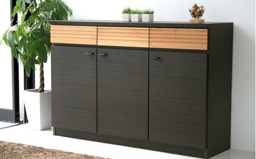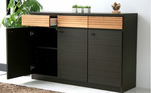 ダークなボディにアルダー材の前板がモダンな空間を演出する「FEシリーズ」120サイドボード。