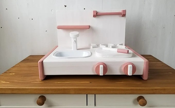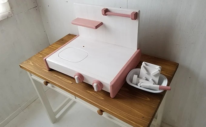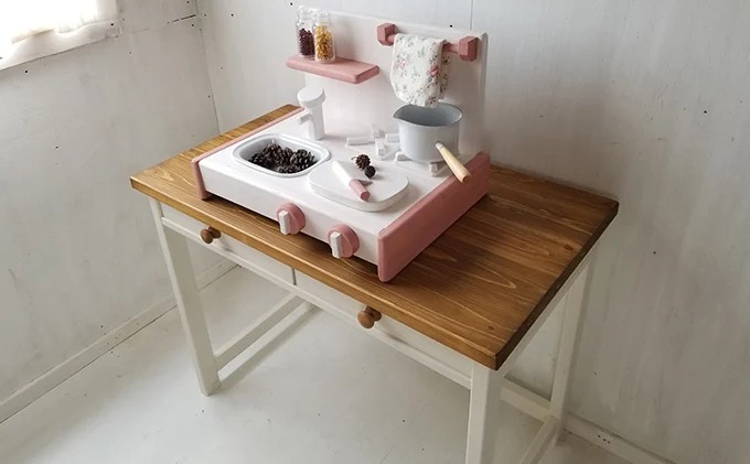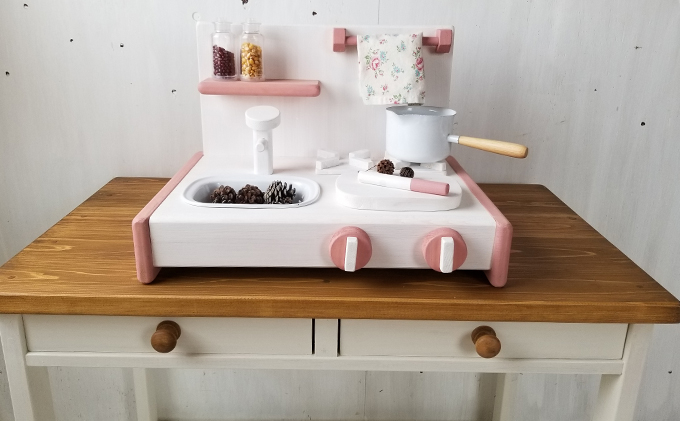大切なお子さまたちに安心安全で使っていただきたい、そんな想いでひとつひとつ丁寧に作られたままごとキッチンの卓上タイプです。