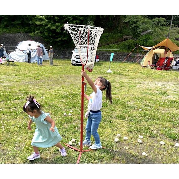 グラウンド中央は遊戯スペースになっていますので、お子さまもおもいっきり走り回れます。 校長(責任者)の笹田は、この学校の卒業生。技術科の教員をしていたので滑り台やブランコなど手作りの遊具もいっぱいです。また玉入れや綱引きなどの運動会の道具もありますので、初対面のファミリー同士がチームとなってミニ運動会が自然発生的に開催されることも!