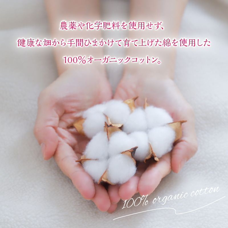 農薬や化学肥料を使用せず、手間暇かけて育てた綿を使用した100%オーガニックコットンです。