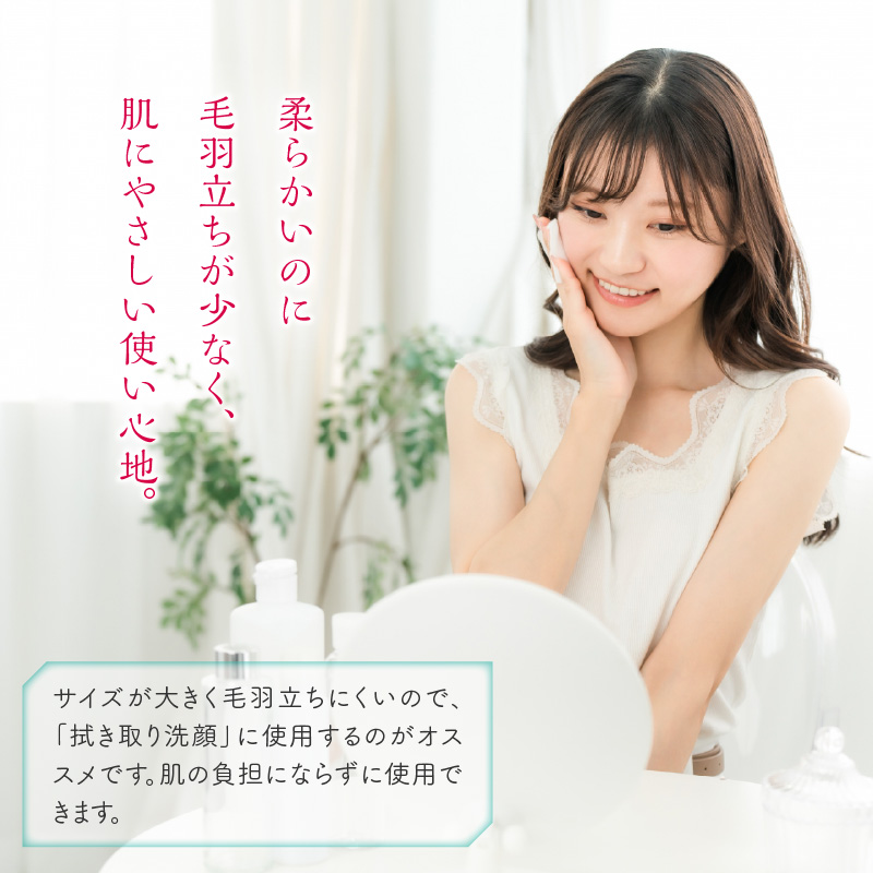 サイズが大きく柔らかいのに毛羽立ちにくいので、「拭き取り洗顔」に使用するのがオススメです!