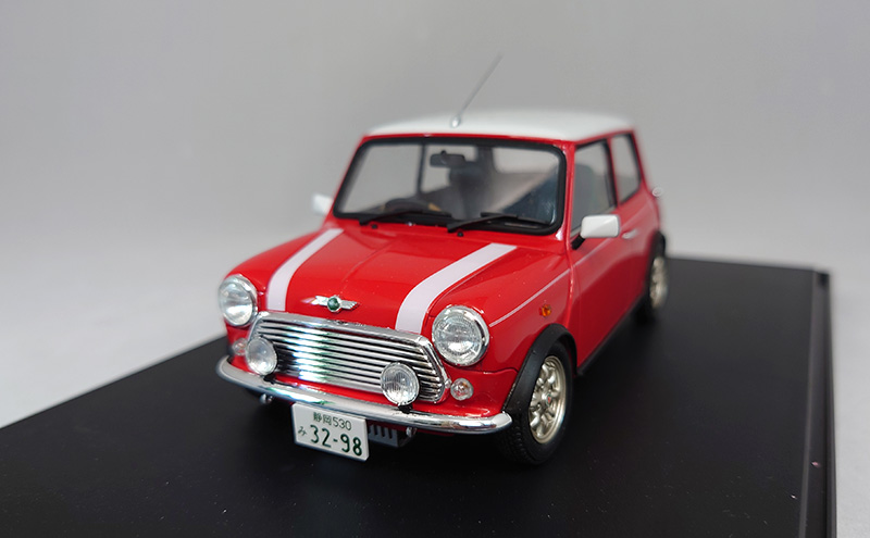 キットは1997年~2000年に生産されたクラシックミニの最終型(通称MK.X)の中から、「ミニ クーパー」(1997年)を実車取材をもとに再現された1/24プラスチックモデルの完成品です。