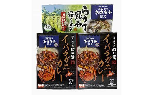 知床羅臼産 幻の蟹 イバラガニカレー(2箱)・昆布羅~メン(5袋)セット×3回