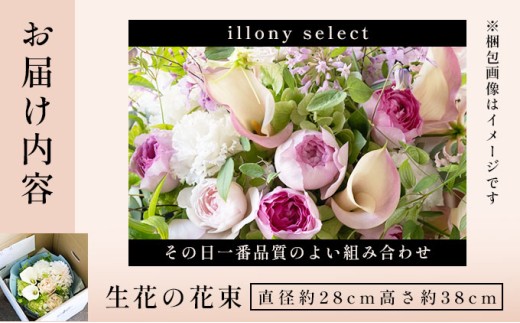 - 生花の花束 ・直径約28cm/高さ約38cm ・illony select (その日一番品質のよい組み合わせ)