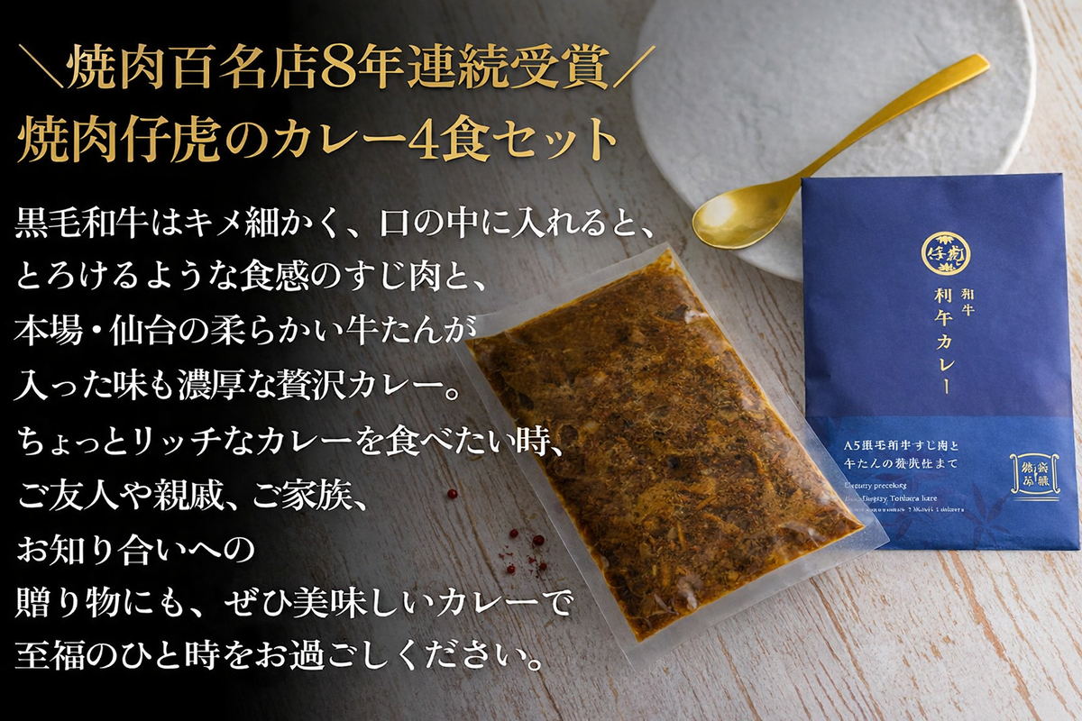 和牛カレーA5黒毛和牛すじ肉と牛たんの贅沢仕立て(200g×4食)
