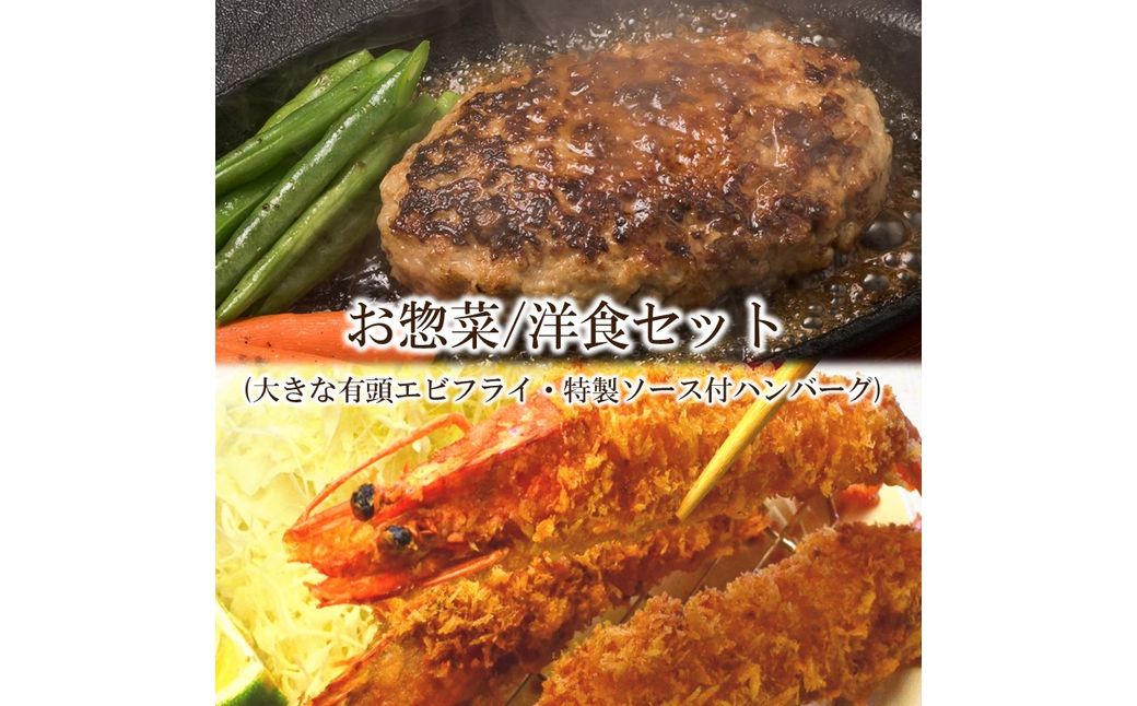 大人も子供も大好きな有頭エビフライ&ハンバーグのセット。