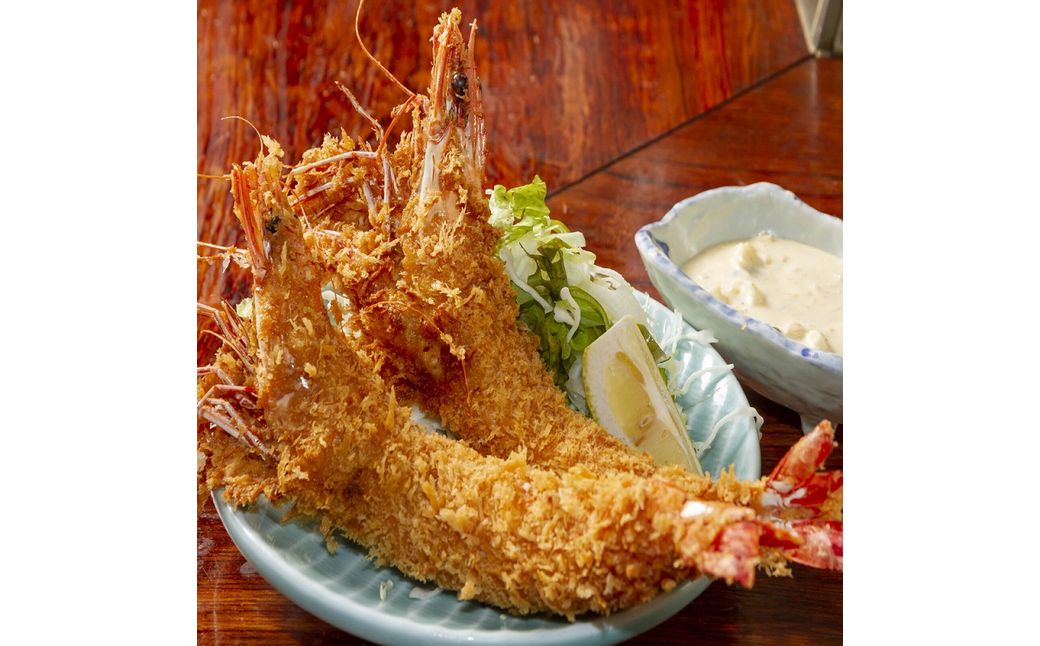 エビフライは、大きさ約20cm、重さ約77gのエビを使ったエビフライ8尾。