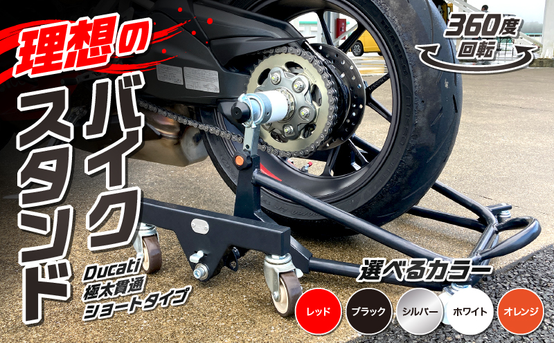 ガレージREVO Ducati 極太 貫通 ショートタイプ バイクスタンド 選べる カラー レッド ブラック シルバー ホワイト オレンジ 移動式バイクスタンド バイク スタンド ガレージ 収納 永久補償 愛知県 小牧市 送料無料