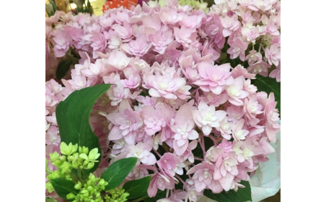 あじさいの鉢を、可愛くラッピングしました。