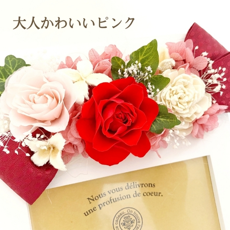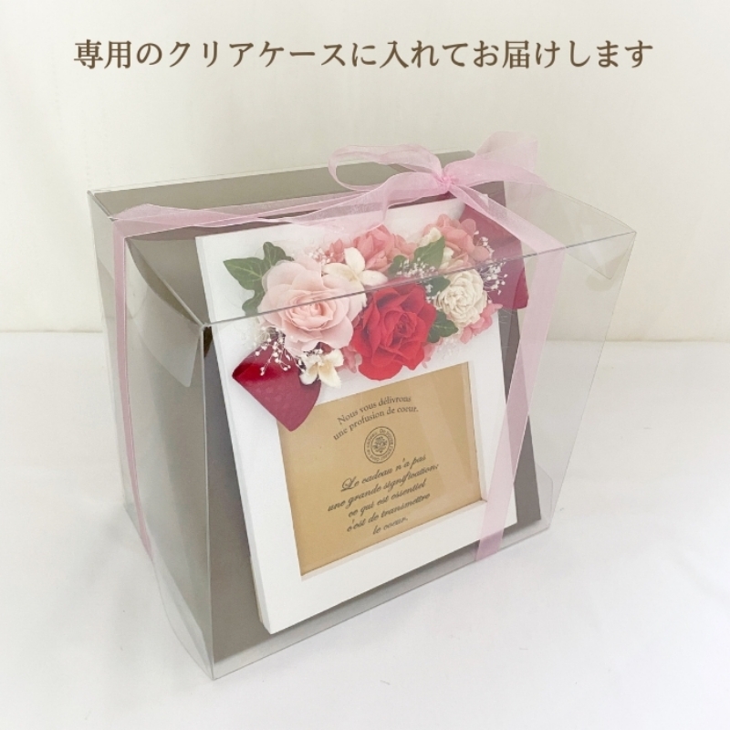 素材は木製で温かみのあるナチュラルなフレームに、プリザーブドフラワーを使用しました。