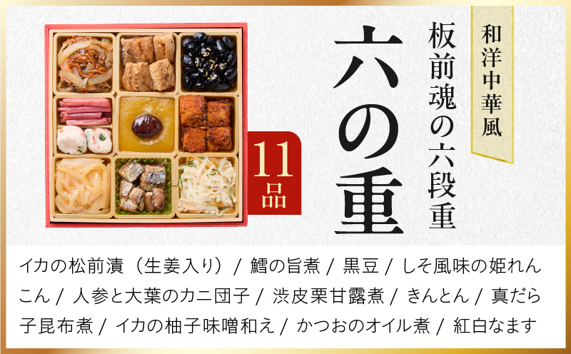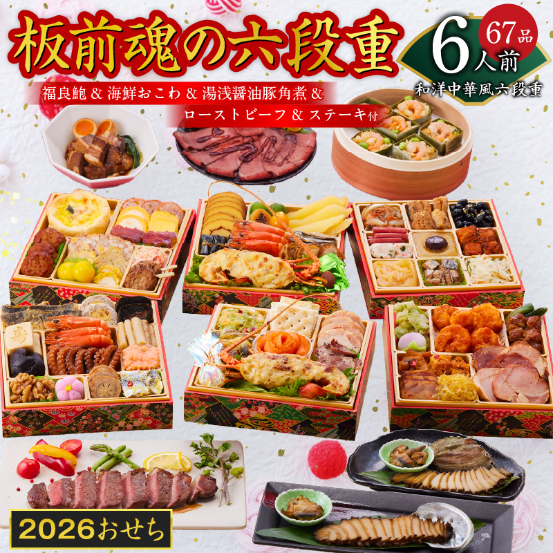 仕様:六段重 6.8寸、品目:67品目、人数:6人前
