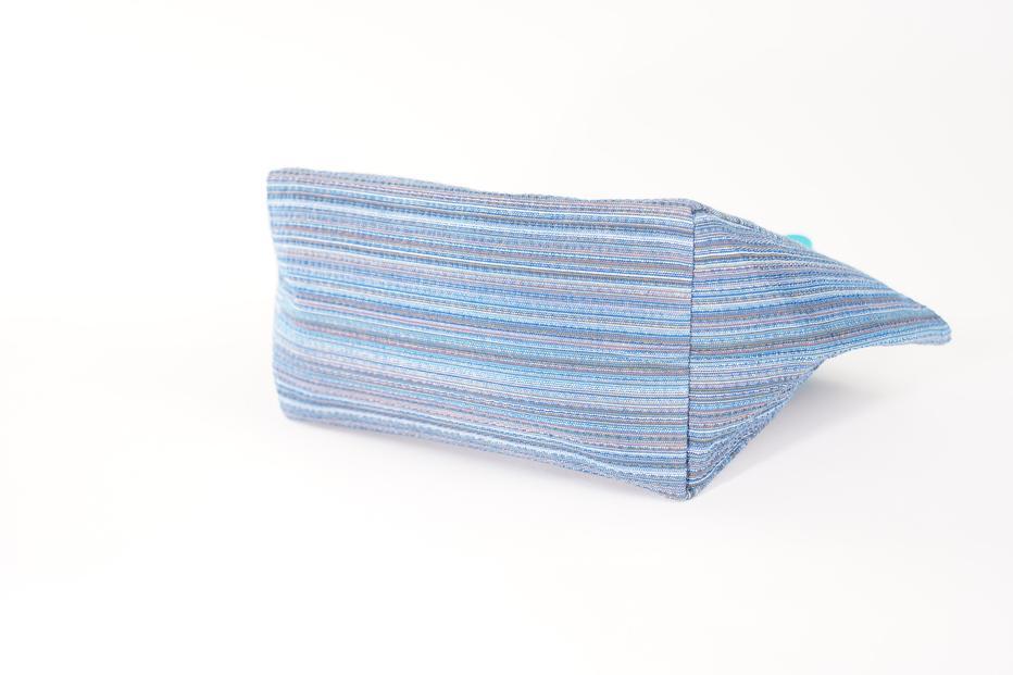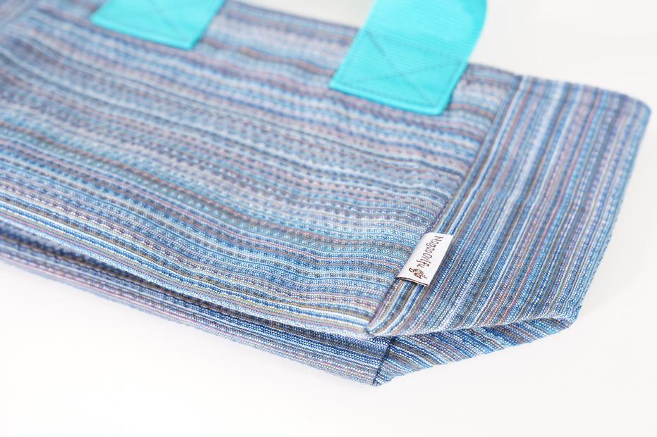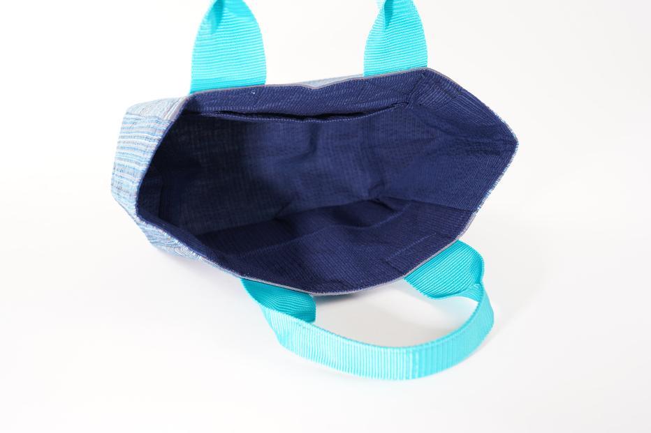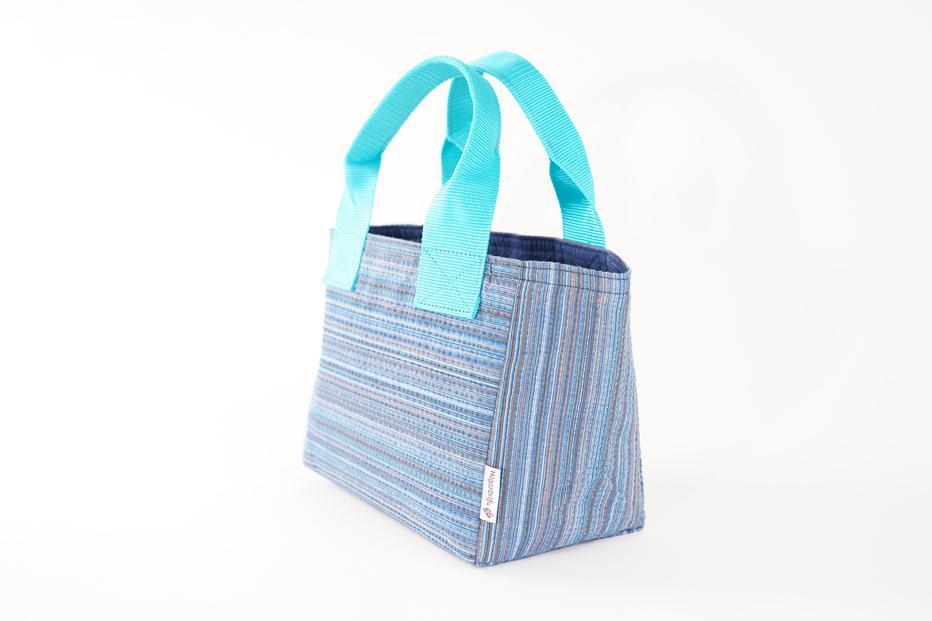 徳島の地域ブランドである「阿波しじら織」のミニトートバッグです。カラフルな持ち手がアクセントになっています。