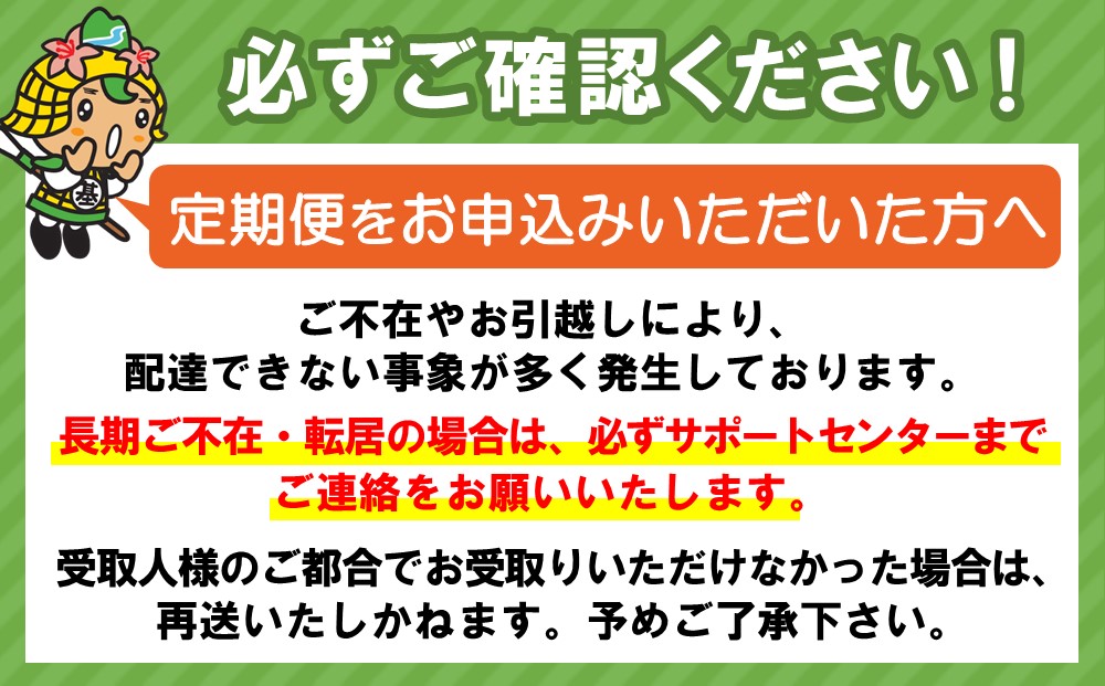 者の都合により返礼品がお届けできない場合に対する再出荷は致しかねますのでご了承ください。