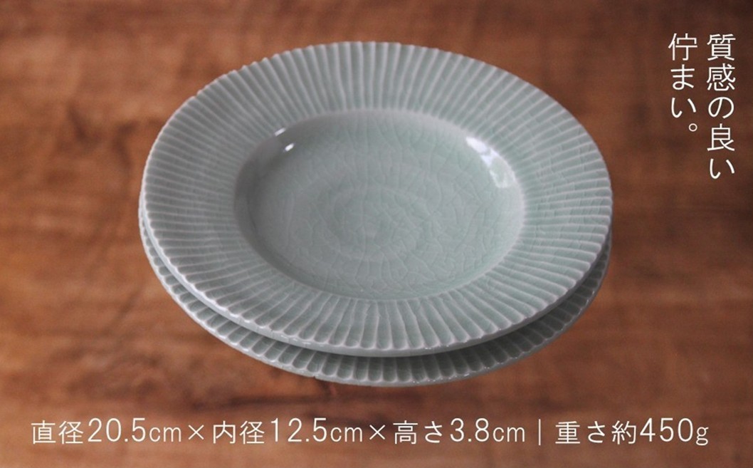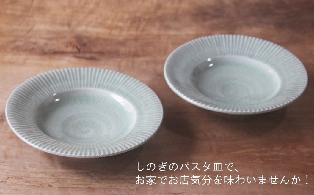 ろくろ成型後、しのぎを施したパスタ皿です。