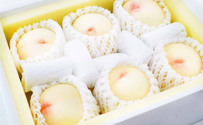 岡山の白桃6玉(計1.6kg以上)おかやま夢白桃・白麗・白皇・瀬戸内白桃 他旬の白桃 化粧箱入り…8月発送