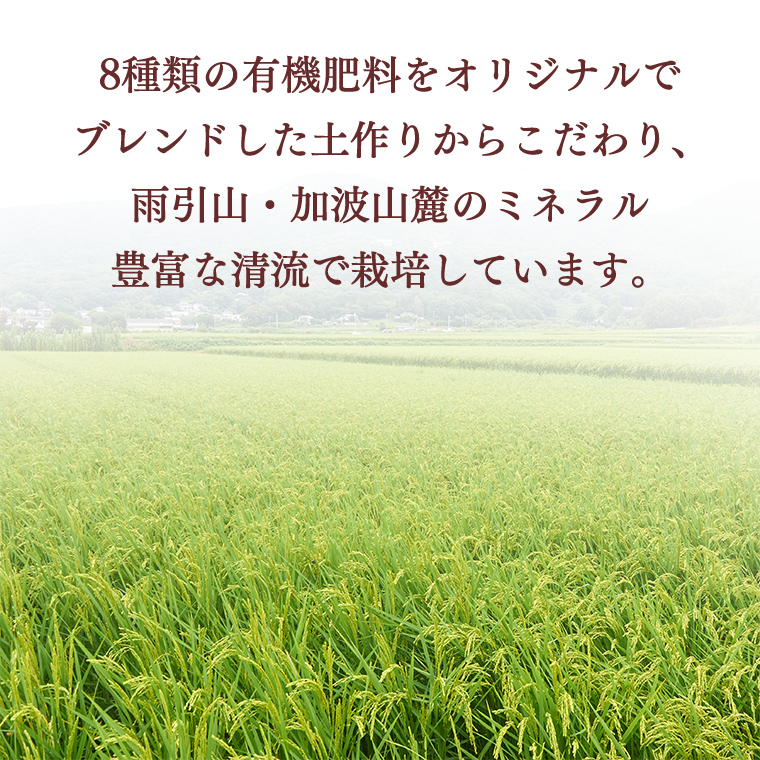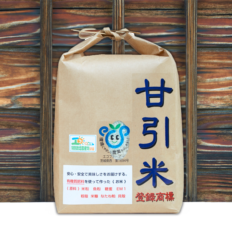 オリジナルの有機質肥料は8種類の原料(米糠・魚粉・糖蜜・EM菌(土壌改良資材)・籾殻・貝殻・なたね粕)で栽培した甘引米(品種:コシヒカリ)は、噛めば噛むほどお口の中で広がる甘味、冷めても変わらない甘味が抜群です。
