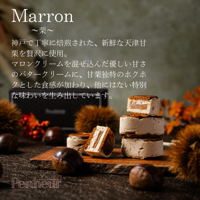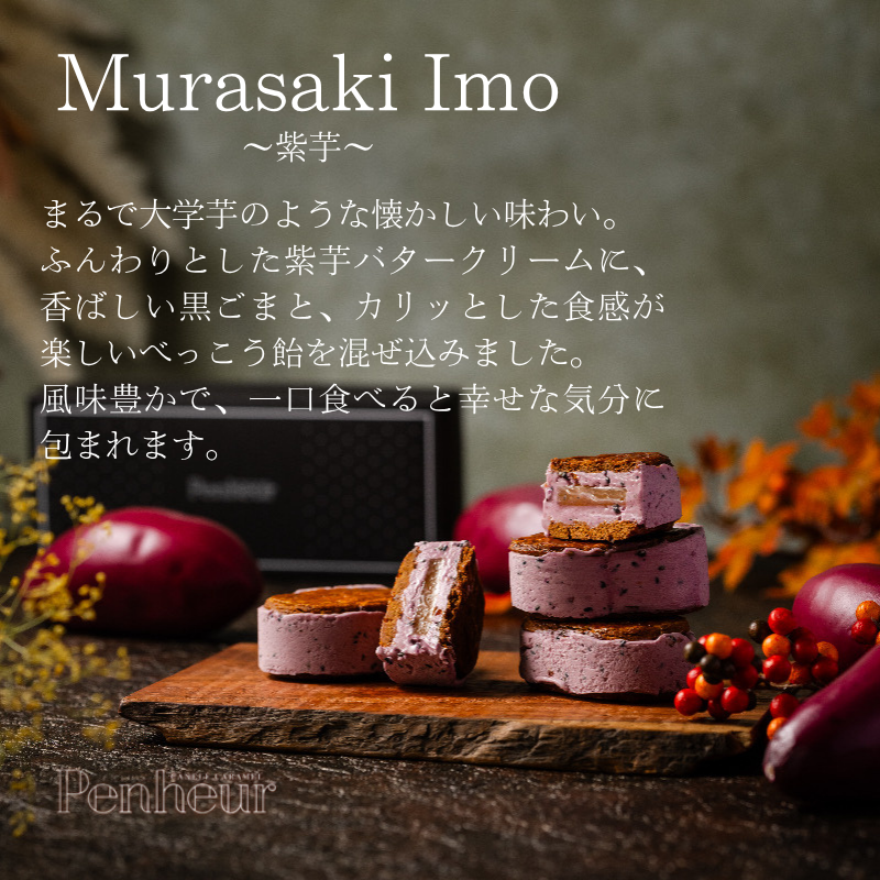 神戸・北野のキャラメル専門店「Penheur(プノール)」から、人気のバターサンド『プレミアム・カルテット』に秋限定フレーバー「紫芋」と「栗」が登場!