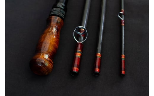 フェルール部及びバット部はメタリックのレッドとコパー、グリーンを基調とした工芸的なスレッドワークで仕上げています。
