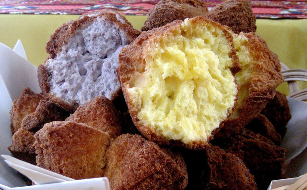 沖縄の伝統的な揚げ菓子「サーターアンダギー」を、三矢本舗オリジナルのミックス粉で丁寧に仕上げました。