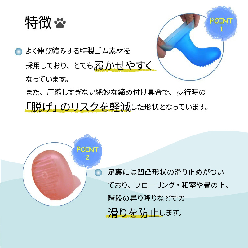 シリコンの様な柔らかさで履かせやすく脱げにくいわんちゃん用のソックスです。