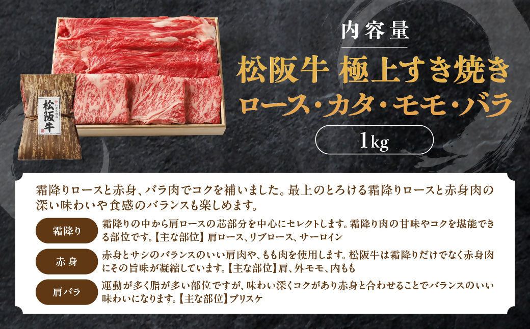 松阪牛 すき焼き 1kg (ロース・カタ・モモ・バラ)