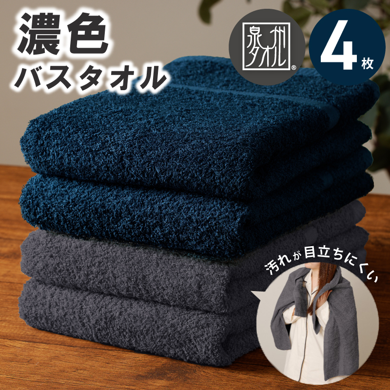 濃色カラー バスタオル 4枚(ネイビー&ダークグレー 各2枚)