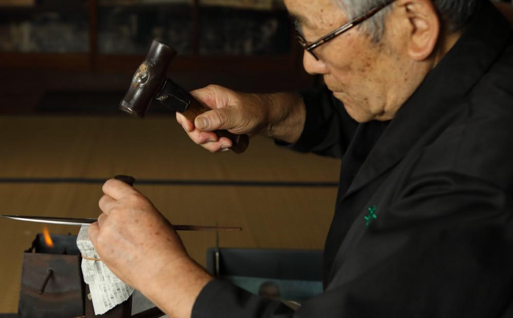 堺では、鍛冶と研ぎ、柄付けのそれぞれの技術を代々に渡って職人たちに継承されています。