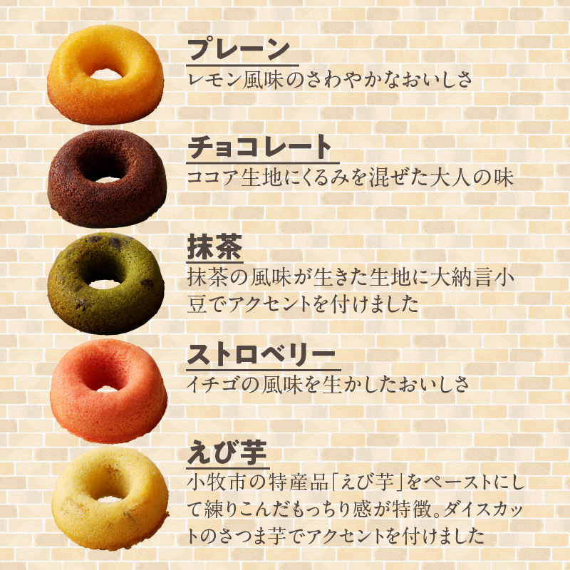 プレーン、チョコレート、抹茶、ストロベリー、えび芋 5種各2個(計10個入り)