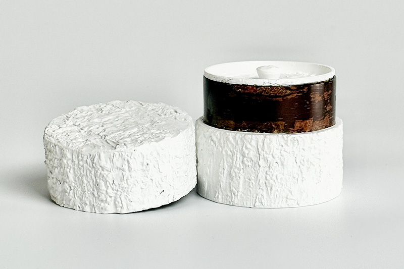 山桜樹皮の持つ有機的な凹凸の魅力を引き出すよう、白または黒のマット塗装を施しました。