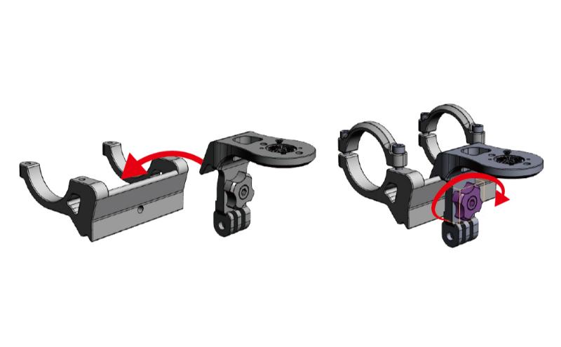 ※1 ブロンプトン用【R+B-BROMPTON】の場合、カメラやライトアダプターを付ける際には延長するようなパーツがないと干渉し装着できない場合がございます。