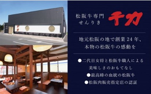 厳選した松阪牛ロースの霜降りは舌の上でふわっと溶け、濃厚な旨味と甘味が溢れます。