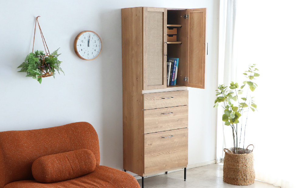 ガラス扉を組み合わせて飾り棚を作ることもでき、コーディネートの幅がアップします。
