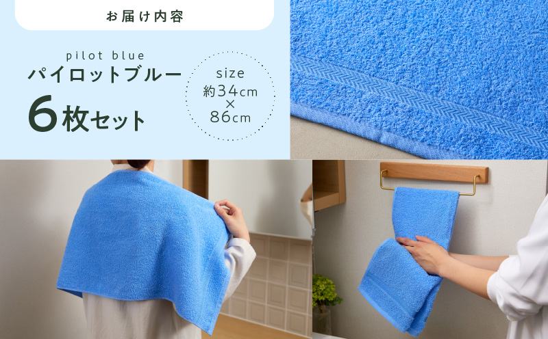 コーマカラーフェイスタオル6枚セット(パイロットブルー)