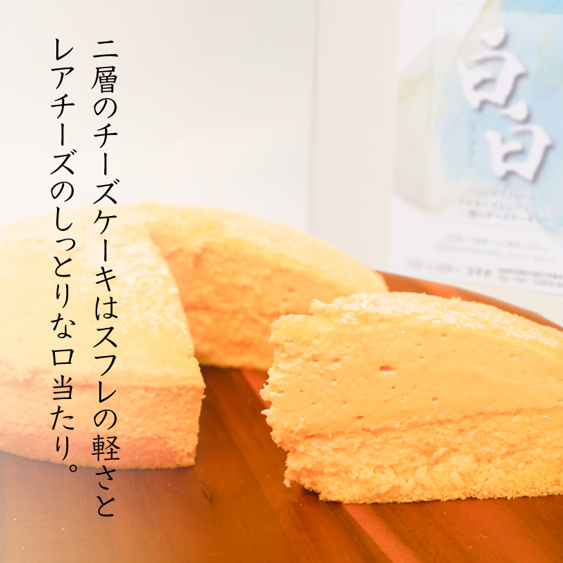 3|白白という名前のチーズケーキで、町内唯一の洋菓子専門店(区域内)において、原材料の仕入れから、生地作り、焼き上げ、梱包までの全工程を行っている。